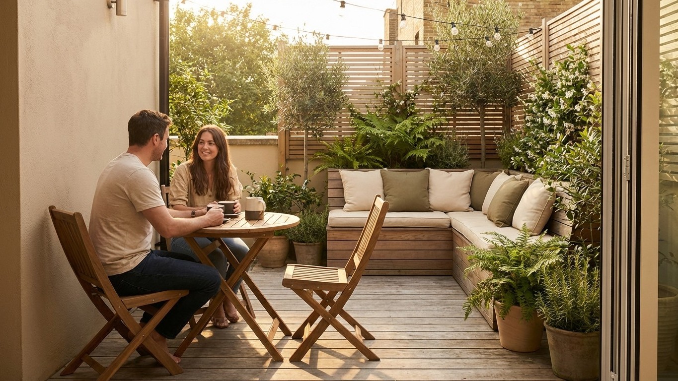 On n’agrandit pas les mètres carrés. On agrandit la sensation. Et sur une petite terrasse, la sensation se travaille comme dans un studio.