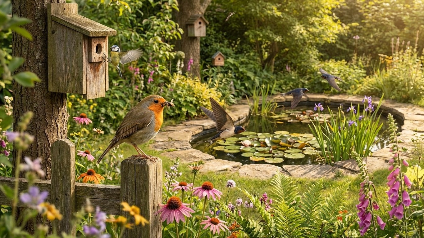 - Un jardin diversifié et des nichoirs adaptés attirent plus d’oiseaux bienfaiteurs.
